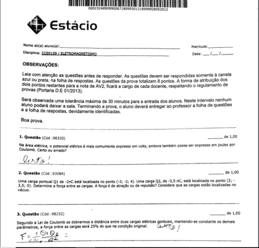 av1 eletromag av2 eletromag estacio av2 eletromagnetismo eletromagnetismo engenharia eletrica